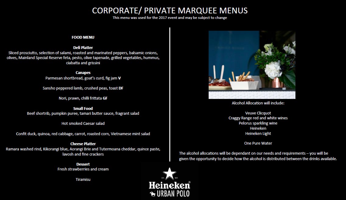 Two staff passes will be allocated to each marquee in order for your marquee to be managed accordingly by your own staff. This is in addition to the security provided by Urban Polo
